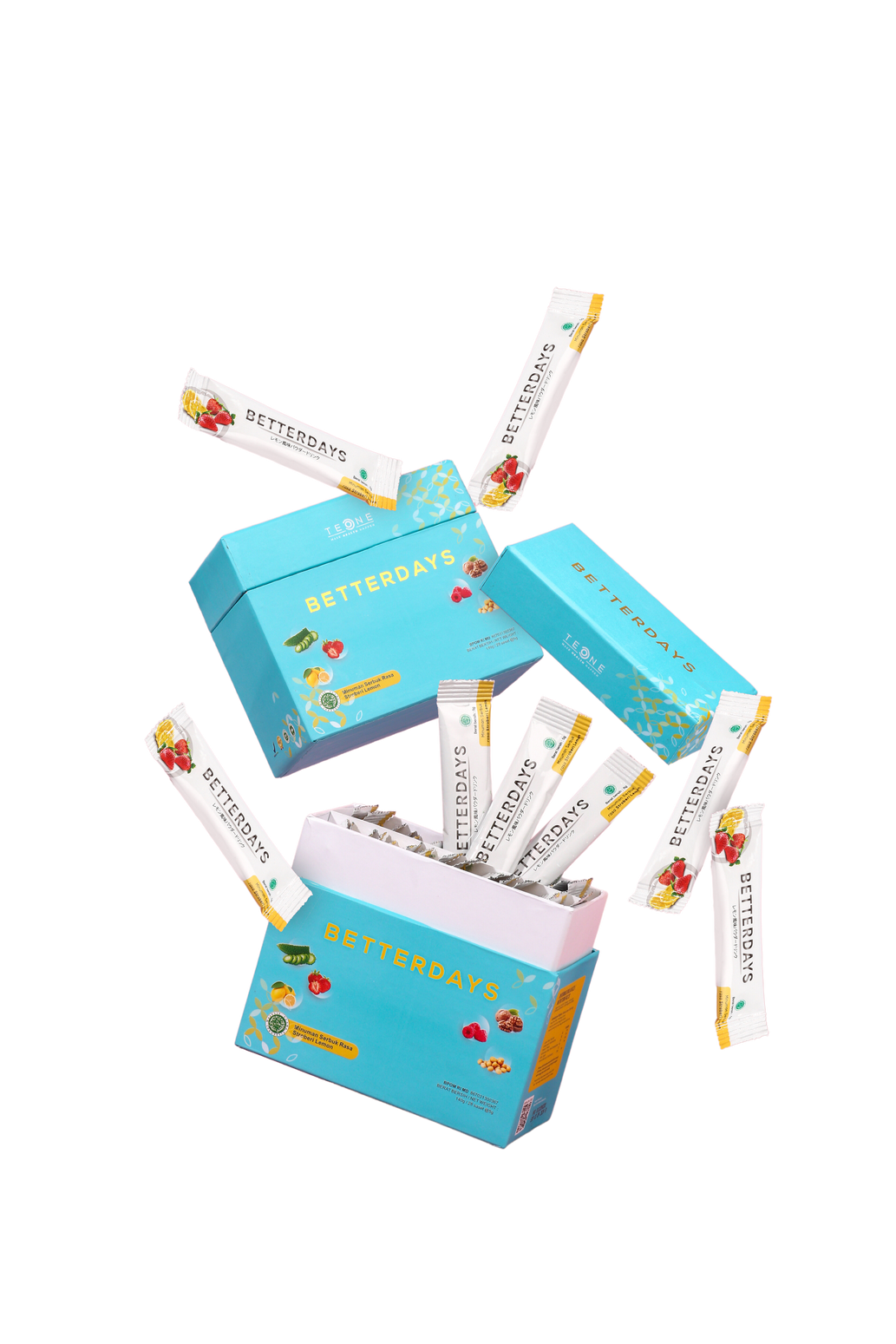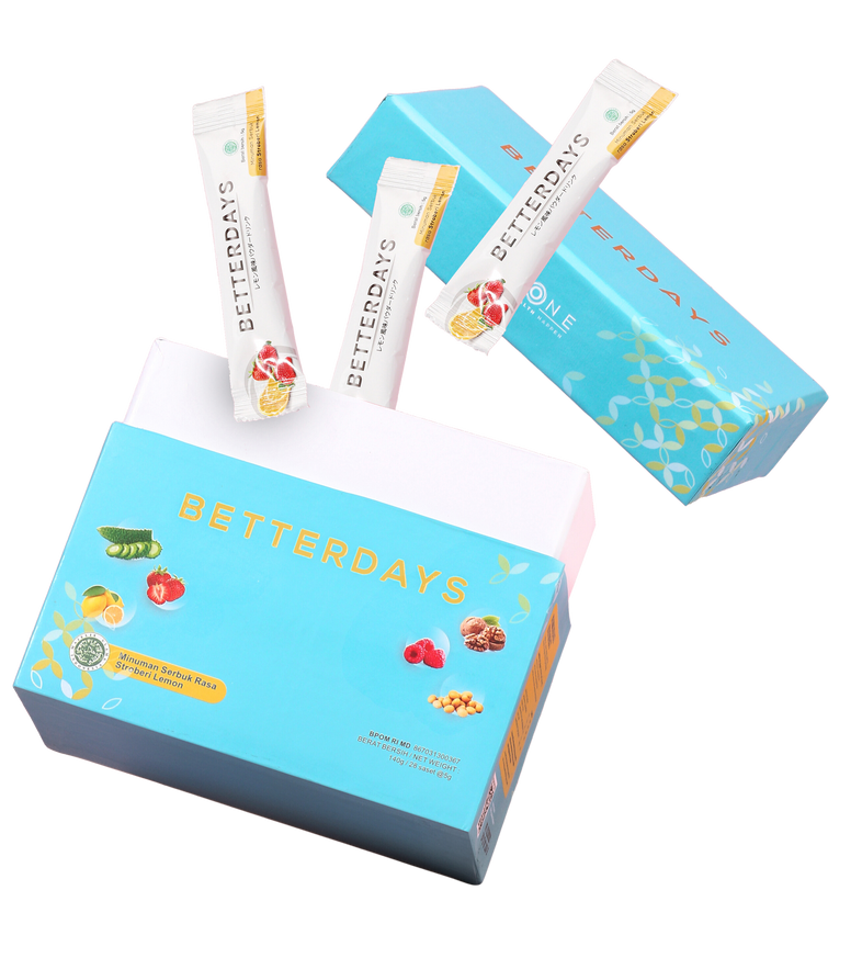 Diformulasikan dengan bahan-bahan alami berkualitas tinggi. BETTERDAYS juga membantu membersihkan darah dari kotoran akibat radikal bebas dan pola makan modern yang tidak sehat. Berdasarkan hasil dari penelitian melalui uji klinis internasional, BETTERDAYS adalah pilihan tepat untuk menjaga kesehatan dan kesejahteraan