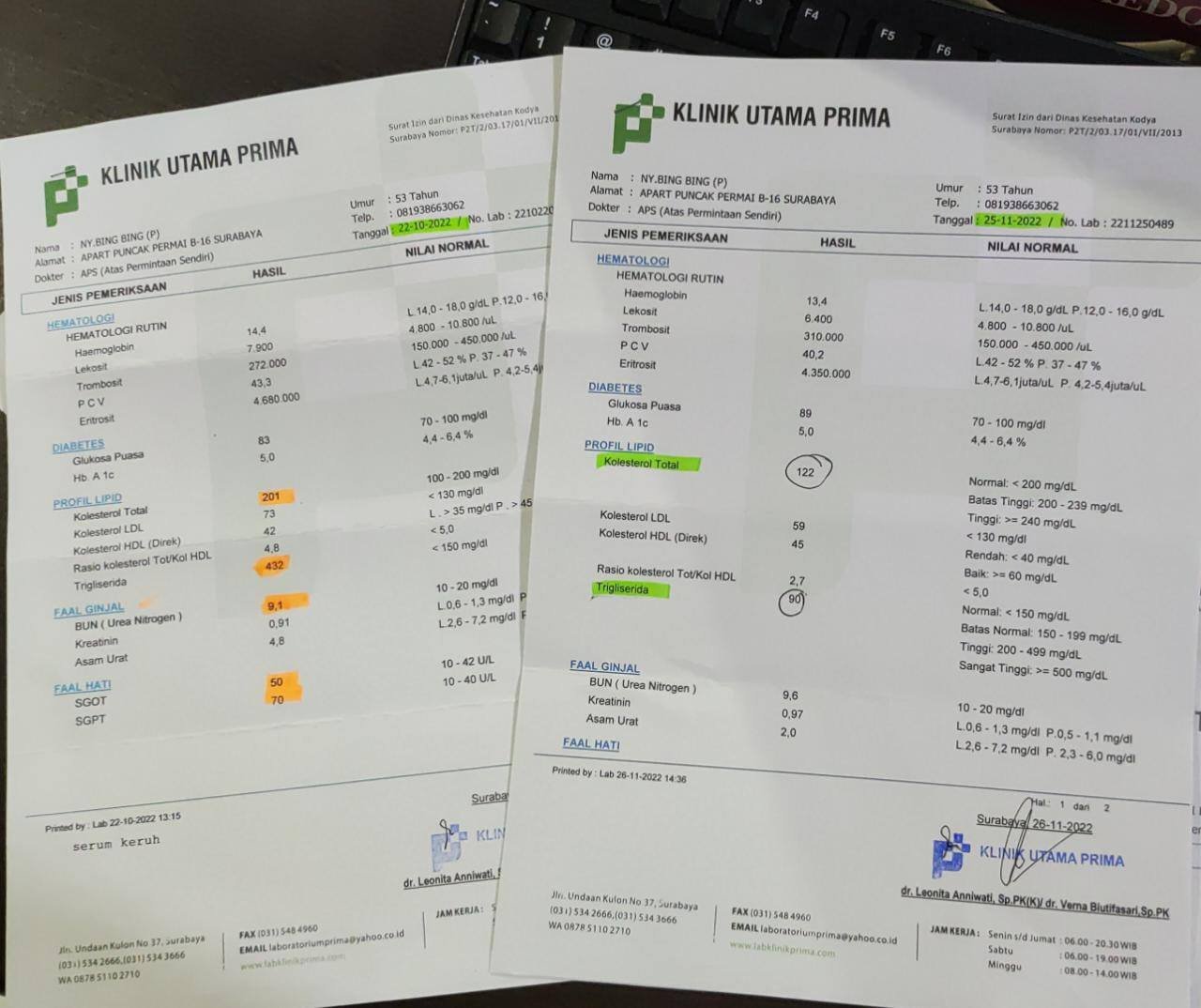 Asam lambung, Kolesterol, Asam urat kembali menjadi normal lagi.