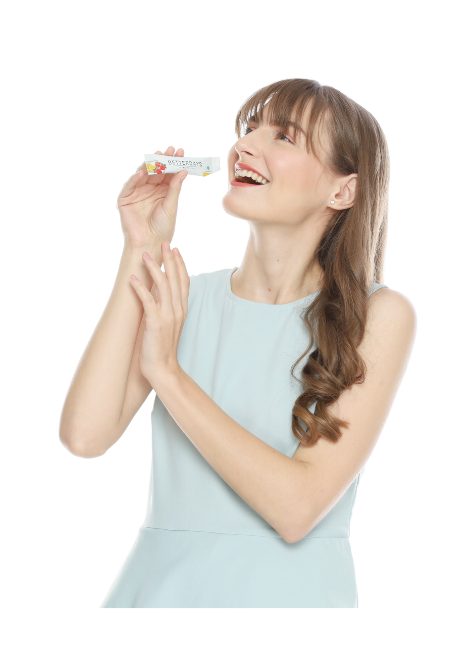 Ambil 1 Saset BETTERDAYS dan tuangkan di bawah lidah Anda sebelum makan berat